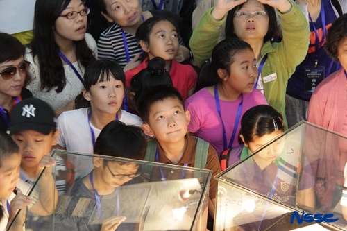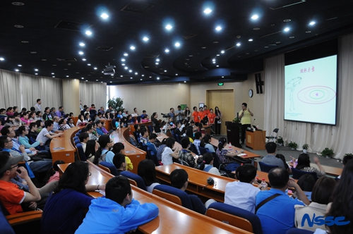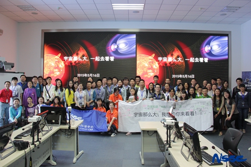 5月16日,国家空间科学中心第十一届公众科学日成功举办。针对本次开放日活动,空间中心提前策划,创新形式,携手“百度知道”,以百度知道首页、《知道日报》、《真相问答机》、官方微博、微信、APP等为平台,从千余名空间科学爱好者中层层选拔,最终确定了45名幸运网友亲临空间中心,感受空间科学的独特魅力,获得了良好的科学传播效果。除了幸运网友之外,开放日当天,中心还接待了来自中关村一小、二小、三小,中关村中学、北京大学、清华大学、北京航空航天大学等百余家单位的500余名爱好空间科学的小朋友和大朋友们。 围绕空间科学先导专项首颗发射的暗物质粒子探测卫星,活动特邀紫金山天文台的冯磊博士为大家奉上精彩的前沿科普报告,带领大家走进暗物质的神秘世界。冯博士在报告中讲解道,对许多人来说,“暗物质”、“暗能量”仍然是个神秘的话题,它看不见也摸不着;我们熟知的水、食物、建筑、地球、太阳等等,都属于普通物质,它们仅仅占所有物质的4%;进一步说,暗能量约占宇宙总能量的73%,暗物质约占宇宙总能量的23%,两者之和就占到宇宙总能量的96%;暗物质就像“幽灵”,我们即将发射暗物质卫星目的就是为了能够将其探测出来,将其从“黑暗”中“揪出来”。 除了生动的科普讲座外,开放日还为空间科学迷们安排了丰富的参观路线。位于九章大厦一层的赵九章铜像和“东方红一号”1:1模型引起了网友们对老一辈科学家的崇敬和缅怀之情。在曾担任过我国首次太空授课中央电视台直播嘉宾的钱航博士的带领下,网友们通过“中国科学院与东方红一号专题展”,回顾、重温了“581”任务从酝酿到启动,卫星研制工作从暂时“推后一点”到全面展开,直至1970年成功发射的艰辛历程。当看到已经解密的“581”组会议纪要、关于发射第一个人造卫星方案论证会议的纪要及简报、“581”组科技档案、东方红一号备份星——“实践一号”工作笔记、技术报告等珍贵文献和档案实物,网友们纷纷赞叹老一辈科学家默默奉献、艰苦卓绝的贡献精神。 空间中心“高大上”“高精尖”的顶级重点实验室也在活动当天向公众开放。复杂航天系统电子信息技术院重点实验室、空间天气学国家重点实验室、空间环境研究预报中心结合其研究领域推出了独具特色的讲解和互动活动。 自2004年起,空间中心已经连续十一年举办公众科学日活动,公众科学开放日已经成为空间中心科普工作的品牌活动,为社会公众普及科学知识、激发社会公众对空间科学的兴趣、了解国家级科研机构搭建了良好的平台。 (供稿:综合办)  图一:仰望东方红一号1:1 模型