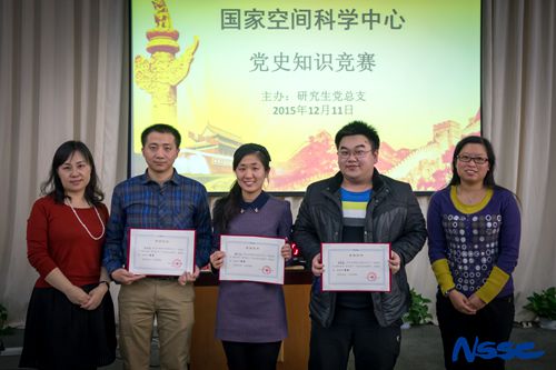 为纪念中国人民抗日战争暨世界反法西斯战争胜利70周年,大力弘扬爱国主义精神和民族精神,学习习总书记“三严三实”讲话,坚定理想信念,强化党性观念,12月11日下午,空间中心研究生党总支在地球厅举办了“重温党史强化意识艰苦奋斗”党史知识竞赛,中心党办周谊主任和研究生党总支书记李燕秋老师作为嘉宾出席了活动,九十余名研究生党员及入党积极分子列席参加。 本次竞赛共有六支队伍参与角逐,每个支部各派两支队伍参赛,每支队伍三名代表。活动分必答、抢答、挑战和互动四个环节。 六支参赛代表队准备充分,斗志昂扬,必答环节全部答对,不分胜负;抢答环节沉着冷静,出击果断,跌宕起伏,现场激烈;挑战环节斗智斗勇,敢于挑战,运筹帷幄,冲刺胜利;互动环节争先恐后,气氛热烈,寓学于乐,学乐双赢。 通过本次活动,促进了研究生党员及入党积极分子对党史党章、毛泽东思想、中国特色社会主义理论、“三严三实”重要讲话的学习兴趣,加深了对党的认识,提高了思想觉悟,强化了党性观念和党员意识。竞赛获得到了中心党办、研究生党员们的一致好评,研究生党总支表示今后将继续丰富活动形式,充分调动广大研究生党员积极性,为中心发展、为“率先行动”添砖添瓦。