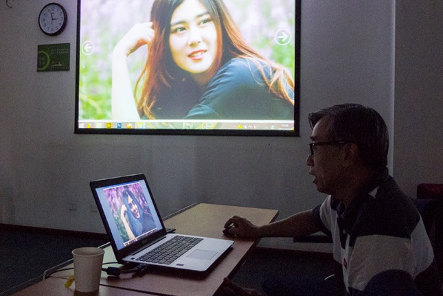 首先,于九章大厦木星厅进行了人像摄影专题讲座,由资深摄影师杨增玲主讲。杨老师首先介绍了人像摄影常用的大光圈镜头相关知识,尤其对景深的影响因素和应用方法进行了详细介绍。然后用一张张精美的照片作为实例,对人像摄影的基本构图、用光、对焦等技巧进行介绍,让大家不仅体会到摄影技巧的运用,还从中领略到人像摄影的魅力。