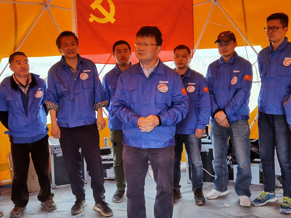 中心党委非常关心实验队和临时党支部的工作,受中心党委委托,中心副主任、党委委员董晓龙赴实验现场进行慰问和指导。2020年9月12日,临时党支部组织了主题党日活动,董晓龙委员带领大家学习了习近平9月11日在科学家座谈会上的重要讲话,向实验队员宣讲了科学家精神,并激励实验队员在研究中要坚持“问题导向”、“需求导向”,保持对发展前沿科学和核心关键技术的热情,树立科技报国的理想信念,实验队员一起重温了入党誓词。