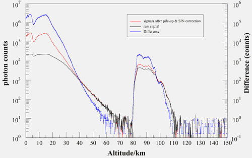在大功率孔径积激光雷达探测中,强烈大气后向散射信号引起的探测器脉冲累积效应(Pulse Pile-up)和强光感生噪声(Signal-Induced Noise)是导致激光雷达回波信号非线性失真,干扰原始数据反演大气参数准确性的主要因素。尤其对高空金属层荧光激光雷达,为研究金属层(80~150km)的变化特性和精细结构,往往采用高量子效率、光子计数模式的光电倍增管(PMT)以保证金属层探测的高性噪比,这就使得Pulse Pile-up和SIN造成的非线性失真更为明显,与反演需要的大动态范围线性信号相矛盾。目前国际上的解决方案主要有多通道信号拼接,安装机械斩波器等等。为了克服高空强烈钠荧光信号的非线性失真问题,作者基于子午工程激光雷达实际观测的经验基础,提出了一个比上述方法更有效、系统更为简洁的方法:他们设计了一套全新的模块化高精度光电探测器响应特征检测系统,确保实验数据运用到实际激光雷达数据修正的可移植性;提出了一套修正脉冲累积效应的新方法,并建立了SIN精细结构扣除模型,首次详细评估了子午工程激光雷达SIN和Pulse Pile-up效应各自对雷达信号的扰动量。校正后的数据将瑞利原始信号有限的线性范围(55-80km)扩展到20-80km。将修正数据反演的大气密度、温度廓线与TIMED卫星和大气模式相比较,得到了很好的吻合:平流层大气密度误差小于5%,30km至65km温度误差小于±10K。值得注意的是,修正后的钠层数密度峰值有大概30%的增加。