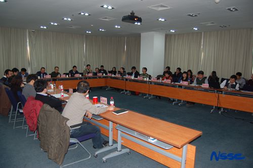 本次会议由空间中心科技处处长臧振群主持,孟新致欢迎词。来自中科院办公厅、条件保障与财务局信息化办公室、地理科学与资源研究所、计算机网络信息中心、高能物理所、紫金山天文台、国家空间科学中心,中国人民大学,北京航空航天大学,中国气象局国家空间天气监测预警中心的领导、专家和项目组成员总计40人参加了此次会议。