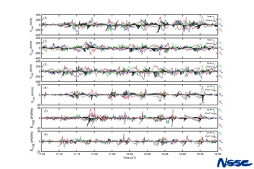 在涡旋结构的边界上,卫星观测到了磁场压缩的特点,根据法拉第定律,磁场变化应该引起垂直于磁场的环形感应电场,而卫星所观测到的感应电场恰好在这个磁场压缩区域存在5~8mV/m的峰值。经过分析估算,这种磁场压缩所引起的感应电场也大约为几个mV/m,与观测到的感应电场吻合得非常好,这说明所观测到的感应电场确实来自于涡旋边界上的磁场压缩效应,从而利用卫星在8万公里外的观测数据对法拉第定律进行了实验验证。这是首次在Kelvin-Helmholtz涡旋边界上观测到由于磁场压缩引起的感应电场。这种感应电场可能是诱发磁场重联过程以及引起太阳风向磁层传输过程的一个重要因素。