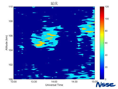 到目前为止,所获取的数据与延庆站同期数据相比,显示数据质量较高,具备重要的参考价值。下图为2015年5月15日夜晚在平泉和延庆两个台站同时观测到的双钠层事件的时间演化图,从图可见高端突发钠层在两个地方有着很明显的差异。