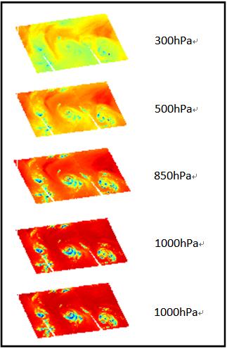 继今年6月下旬成功监测台风“鲸鱼”活动轨迹之后,由中科院国家空间科学中心微波遥感技术院重点实验室研制的FY-3B微波湿度计在此次“三旋共舞”的监测和预报中再次大显身手,为气象预报人员在台风定位定强、环境场水汽输送、暖心变化和倾斜度分析、强对流降雨区预报、强对流识别、对流云的类型判断等方面的预报工作提供了重要的参考信息。