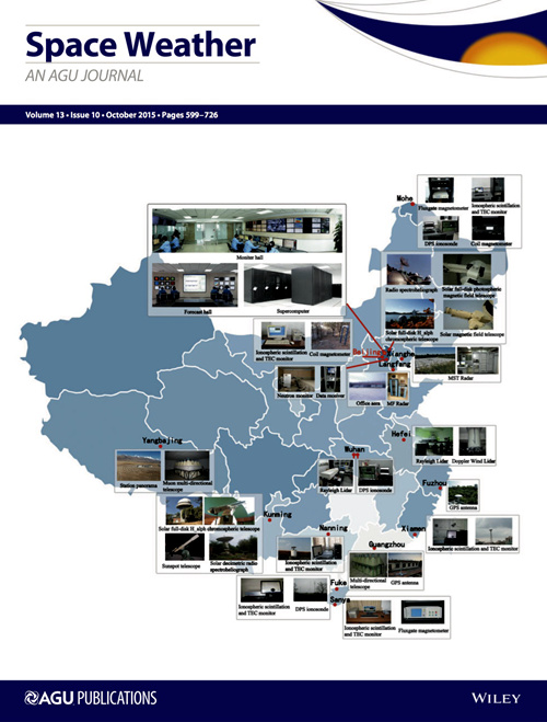 11月18日,美国地球物理联合会(AGU)最新一期《Space Weather》期刊(Volume 13,Issue 10)在线发布,其中,介绍国家空间科学中心空间环境保障服务的特稿文章(LiuSiqing, and Jiancun Gong (2015), Operational Space Weather Services in National Space Science Center of Chinese Academy of Sciences, Space Weather, 13, doi:10.1002/2015SW001298.)荣登杂志封面。该文章介绍了国家空间科学中心在空间环境保障服务方面的发展历程、保障任务、技术能力和未来发展规划等。