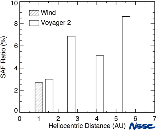 图2. 向太阳传播的阿尔芬扰动的比例随日心距的变化