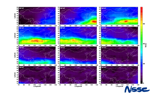 国家空间科学中心空间环境研究预报室的阿尔察、刘四清、黄文耿等研究者综合利用地基GNSS数据和天基COSMIC掩星观测数据,使用国际参考电离层IRI作为背景场,采用卡尔曼滤波、三维变分等同化方法,针对中国及周边区域构建了电离层总电子含量(TEC)和三维电子密度高精度高分辨率数据同化模型。其中电离层TEC地图的时空分辨率可达1o×1o×5分钟,电子密度分布的时空分辨率可达到2o×2o×50 km×5 分钟。同化结果分别与实测GPS TEC、电离层测高仪数据、其它国际机构(如CODE等)的TEC产品、犹他州立大学的全球电离层观测同化模型(GAIM)等分别进行了对比验证。分析结果表明模型精度较高,算法合理可行,可为电离层空间天气现报预报,卫星导航、雷达成像等空间环境应用提供精确有效的电离层信息,具有较为重要的科学和工程意义。
