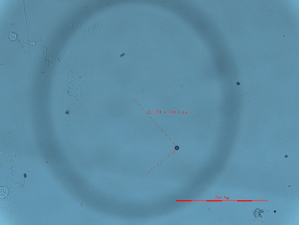 右图:实践十号CR-39测量的重离子径迹图(红色箭头所指为击中水稻种胚的重离子径迹)