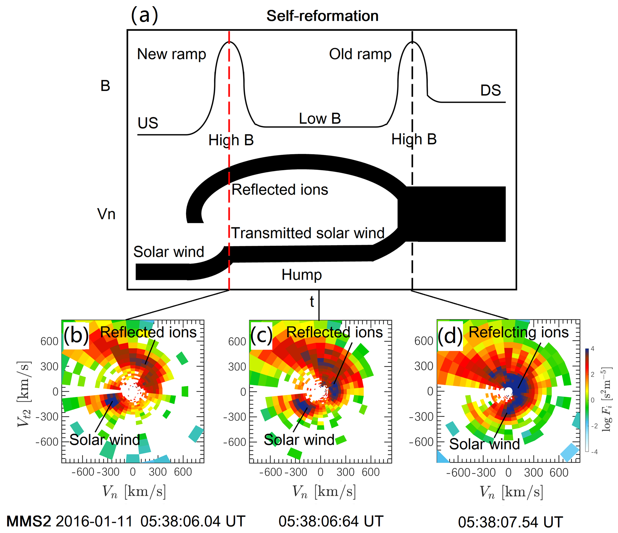 Zhongwei Yang, Ying D. Liu, Andreas Johlander, George K. Parks, Benoit Lavraud, Ensang Lee, Wolfgang Baumjohann, Rui Wang and James L. Burch, MMS direct observations of kinetic-scale shock self-reformation, 2020, ApJL, 901, L6.