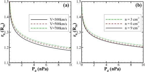 图2 不同密度和速度的太阳风动压对火星日下点磁堆积边界位置的影响