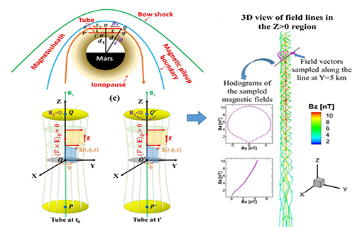 磁通量绳表现为一种螺旋状的磁场结构,是空间物理中能量和粒子传输的重要通道,在太阳系中各个区域(太阳表面到行星际空间再到行星磁层)都能看到。一般认为磁通量绳产生于磁化等离子体中,其产生机制有两种:一是多点磁重联;二是速度剪切。然而,近年来探测结果表明在金星、火星等非磁化的电离层中也有很多磁通量绳,其直径通常与离子回旋半径相当。这种发生在非磁化电离层中的磁通量绳不能用传统的磁重联或者速度剪切来解释,其形成机制一直是个谜。