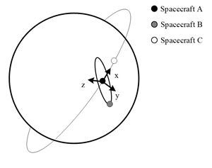 国内外相关研究表明,仅利用相对测量信息即可实现编队航天器的自主导航。其中,航天器间的相对距离信息可通过微波测距或激光测距仪测量得到,相对视线(LOS)信息可通过光学相机测量得到。利用星敏感器提供的惯性基准,将相对位置矢量转换到惯性坐标系,通过对一段时间内的相对位置矢量进行连续测量,即可确定所有成员航天器的绝对轨道要素。这种方法需要将测量信息输入到序贯滤波器中,从而实现自主导航,因此需要一定精度的航天器状态先验信息。通常,这一先验信息由地面站或星上其它导航设备进行获取。