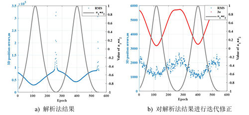 最近,中国科学院国家空间科学中心复杂航天系统电子信息技术院重点实验室的邓丽研究员(通讯作者)与北京航空航天大学宇航学院的孙秀聪副研究员合作,提出了一种仅利用航天器相对位置矢量测量获取编队初始绝对位置的半解析定位方法。这种方法首先对一段时间内的相对位置矢量测量信息进行自适应多项式拟合,提取得到相对引力加速度信息,进而将加速度信息代入二体引力场,利用解析法求解得到编队位置的初始迭代解。再将初始解代入高阶引力场模型,利用高斯牛顿迭代法,得到编队初始位置精确解。仿真结果表明,对于三星编队场景,在测距和测角误差分别为1米和5角秒的情况下,可以实现2千米的自主定位精度。