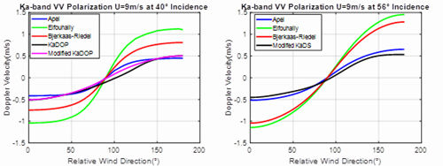 图 基于海面后向散射多普勒模型计算的风-浪引起的多普勒速度与半经验多普勒模型的对比结果
