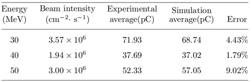 表1: 质子充电的实验与仿真结果