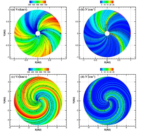 图2:由数据驱动的太阳风解析模型得到的行星际太阳风背景结构