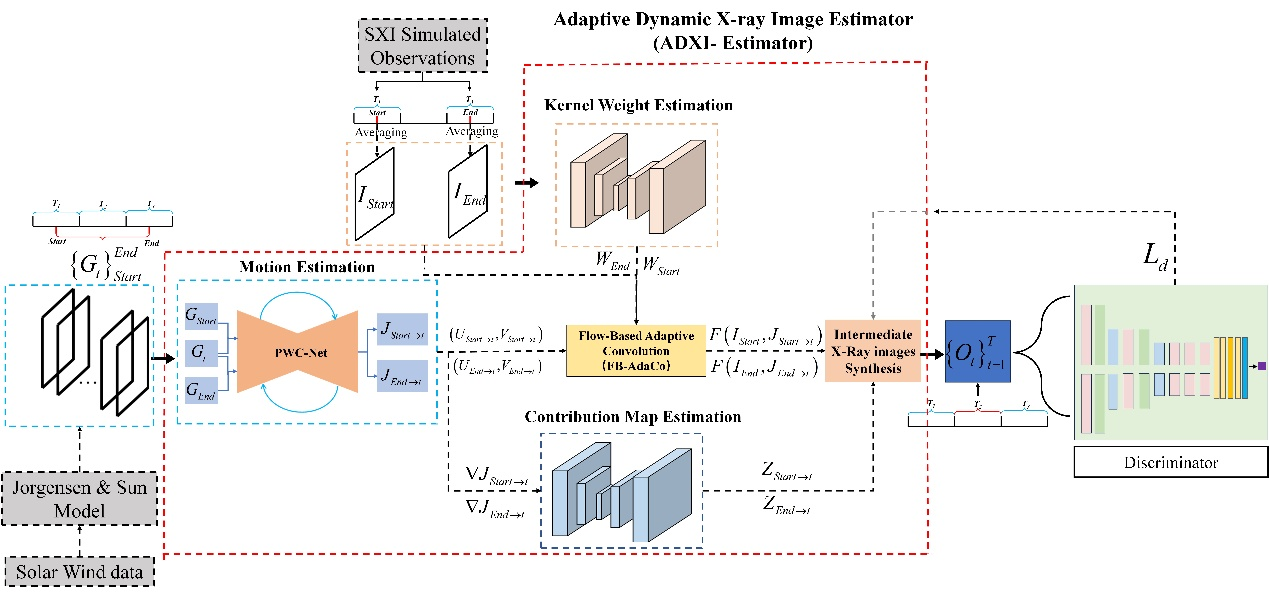该方法依托高时间分辨率的OMNI太阳风数据及低时间分辨率的软X射线模拟图像,以自适应X射线图像估计器(AXDI-Estimator)和时空判别器(ST-Discriminator)为核心,推断出高时间分辨率的磁层动态X射线图像。更为重要的是,该方法具备灵活的时间间隔适应能力(>3分钟),能够满足多样化的任务需求。