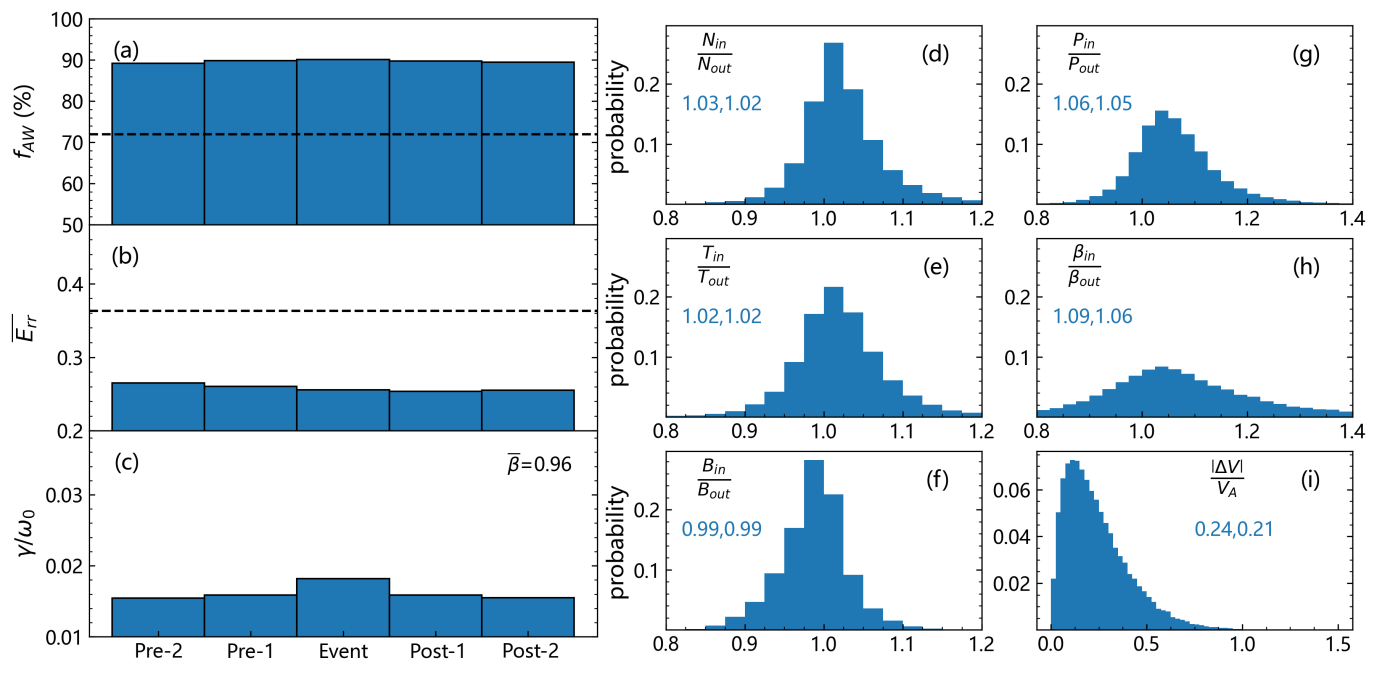 图一,switchback与周围太阳风的阿尔芬特性及等离子体参数对比。