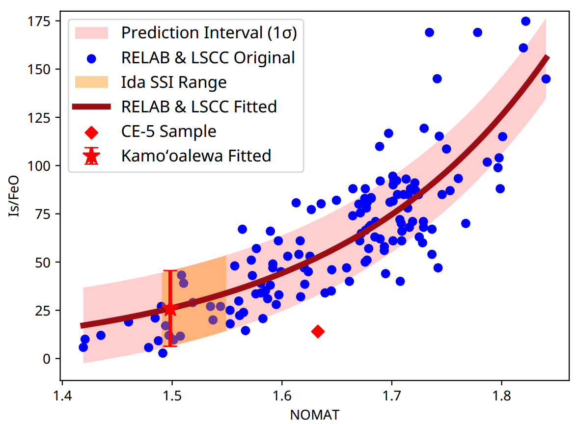 近日,空间中心太阳活动与空间天气全国重点实验室行星环境与演化研究团队的刘洋研究员和杨亚洲副研究员共同指导的博士生刘民歌,通过进一步分析小行星2016HO3的光谱数据,提出了一种适用于归一化光谱的空间风化成熟度模型。此项研究论证了2016HO3可能具有较高的橄榄石含量,并且具有较低的空间风化程度,有潜力为天问二号任务的执行提供一定的参考作用。提出的归一化成熟度模型填补了难以衡量归一化光谱空间风化程度的空白,具有较为广泛的科学和应用价值。