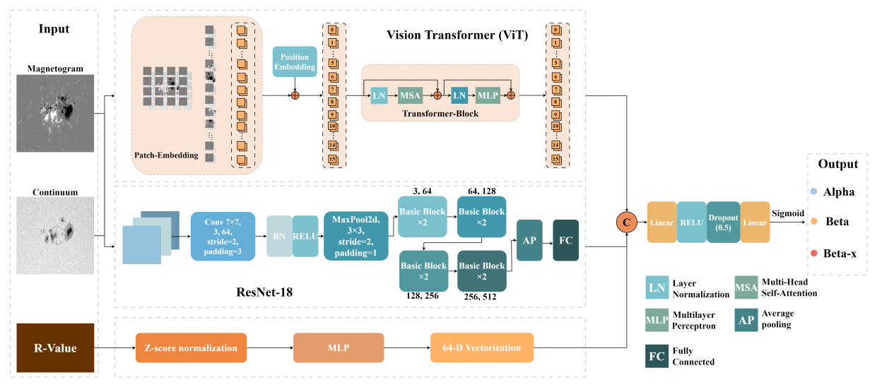 图 1:太阳活动区磁类型识别VIT-CNN-R模型结构示意图