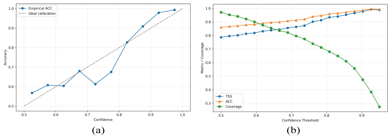 实验结果表明,该模型在Alpha、Beta和Beta-x三类活动区磁类型识别中均取得较高精度,整体分类准确率为0.846,TSS达到0.765;尤其是对复杂磁结构Beta-x型的识别准确率达到0.9,表现出明显优势。研究团队还利用我国夸父一号卫星(ASO-S)自主数据对模型进行了跨数据源测试,结果表明该模型仍保持较好的识别性能,特别是在复杂活动区中显示出良好的泛化能力,这为我国自主数据的应用与智能分析提供了有效技术支撑。