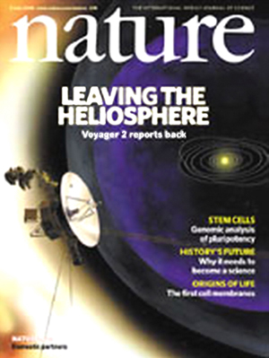 《自然》封面:旅行者二号飞越日球层 “旅行者二号”探测结果 |
