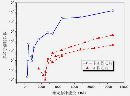 试验表明:加固芯片的抗单粒子翻转能力较未加固芯片得到了大幅度提升——阈值提高一个量级、饱和截面降低三个量级;加固芯片在试验的最大激光脉冲能量(对应于重离子LET值)时仍未发生单粒子锁定现象,而未加固芯片在试验最大激光能量4%时就开始出现单粒子锁定现象。利用脉冲激光装置进行的单粒子效应试验快速、有针对性,对国产宇航用核心电子器件的抗单粒子效应设计具有重要的参考和指导作用。