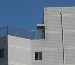 青年公寓:可见建筑物屋顶围栏、平台围栏、窗户、监视摄像机等细微目标。