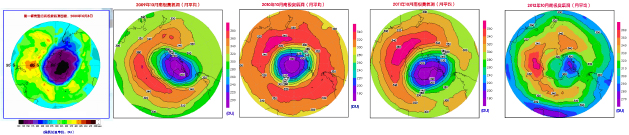图四:FY-3/TOU 对南极臭氧洞连续五年的监测(2008-2012)