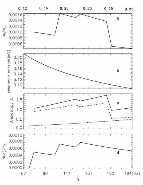 磁场重联是磁能转换为等离子体能量(动量和热量)的重要物理过程之一,是当前我国乃至世界的前沿热点课题之一,同时也是空间物理和空间等离子体物理研究中最具有挑战性的问题之一。磁场重联对解密太阳耀斑爆发、磁层亚暴等灾害性空间天气事件的物理机制和太阳风能量向磁层的输入过程具有重要意义。此外,近磁尾重联与磁层亚暴的动力学过程紧密相关,将对揭示亚暴和磁层空间爆的动力学过程、及磁层空间天气预报产生重要科学意义和应用价值。 日前,中科院国家空间科学中心空间天气学国家重点室磁层组魏新华等通过Cluster等多卫星磁场重联及低频电磁波活动观测研究,结合空间等离子体理论分析,对磁场重联过程中及磁尾近地等离子体片中的撕裂模不稳定性和哨声不稳定性激发等问题展开深入研究。 研究结果表明,磁场重联前的电流片中存在强烈的哨声波活动及其它低频电磁波活动,磁场重联过程中同样观测到很强的波活动。哨声波和正的电子温度各向异性能够发生共振,使得电子被加速或者波活动被激发。观测发现在重联前的电流片中存在着正的电子的温度各向异性(如图一、二),同时还观测到了强烈的哨声波活动(如图三)。通过哨声模不稳定性理论结合观测数据的研究发现,哨声模不稳定性能在重联前的电流片中增长起来。该项研究成果发表在COSPAR学术期刊Advances in Space Research (ASR), 将为科学家进一步解密磁场重联的触发或产生机制起到积极借鉴作用。 (供稿:空间天气学国家重点实验室)