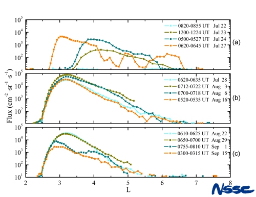 近日,空间中心杨晓超副研究员、朱光武研究员和孙越强研究员等人,应用风云一号卫星空间环境监测器(空间环境探测室自主研制)获得的高能电子探测数据及相关国外数据,细致研究了一次罕见的长寿命相对论电子增强事件,研究发现多种加速机制复合作用激发强烈相对论电子增强事件,行星际环境变化以及磁层/等离子体层对行星际环境变化的响应决定地球外辐射带的动态演化。该结果发表于American Geophysical Union(AGU)学术期刊《Journal of Geophysical Research: Space Physics》,正如审稿人意见所述:“The results from the study have a potential impact on the radiation belt community”。 研究发现,这次事件发生在三次日冕物质抛射(CME)相继爆发的太阳活动背景下,CME导致的行星际磁云携带着高强度、南向的行星际磁场,太阳风高速流和频繁出现的太阳风动压脉冲,使得行星际环境呈现剧烈扰动的状态。对磁层磁场和等离子体波动的分析表明,行星际的剧烈扰动驱动强烈的磁层ULF波动和哨声模波。文章在仿真计算电子漂移共振条件的基础上,分析同期能量电子通量的演化,发现能量电子与ULF波共振导致的径向扩散是本次事件中重要的电子加速机制,同时哨声模合声波驱动的本地加速也是激发本次事件的原因之一。增强后的外辐射带被迅速恢复的等离子体层顶一分为二,电子通量增长幅度较大的部分被“留”在等离子体层顶以内,而其余部分被“挡”在等离子体层顶以外;在等离子体层顶以外,越远离等离子体层顶,相对论电子衰减越快,而在等离子体层内,hiss驱动的缓慢衰减最终导致本次事件的长寿命特征。 相对论电子具有很高能量(>1MeV),能够直接穿透各种航天器的表面材料,产生内部静电放电,造成航天器部件的损坏。当外辐射相对论电子通量剧烈增长,即发生相对论电子增强事件时,运行其中的航天器内部静电放电风险显著增加,严重时可能导致航天器失效,因此外辐射带相对论电子增强事件一直被认为是地球空间航天器在轨安全的最重要威胁之一。同时,外辐射带相对论电子的演化在日-地能量耦合种扮演着重要的角色,因此对这种空间环境事件物理机制的研究具有显著的工程价值和深刻的科学意义。 相关链接:http:/onlinelibravy.wiley.com/enhanced/doi/10.1002/2014JA019797/Citation: Yang, X. C., G. W. Zhu, X. X. Zhang, Y. Q. Sun, J. B. Liang, and X. H. Wei (2014), An unusual long-lived relativistic electron enhancement event excited by sequential CMEs, J. Geophys. Res. Space Physics, 119, doi:10.1002/2014JA019797. (供稿:探测室)