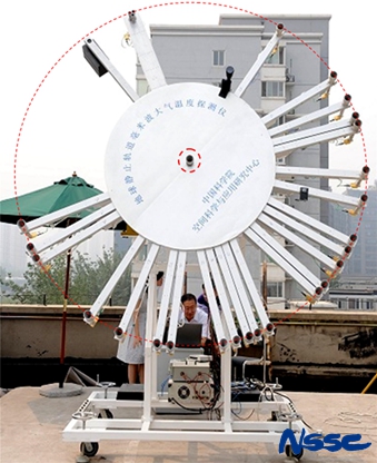 该团队从九十年代中期在国内首先开始这一领域的研制工作,并于2001,2003年先后研制出两部机载遥感器,成功获得了一系列不同的地物目标的傅里叶域的采样和亮温反演图像。特别是该团队发明的时钟扫描成像方法为国际首创。2010年该团队研制出的地球同步轨道被动毫米波成像仪为国际上空间分辨率最高的该类仪器。该仪器的成像结果近期在IEEE地球科学和遥感学报(IEEE Transaction on Geoscience and Remote Sensing)上发表(见文后链接)。该成像仪采用分布在直径2.8米的圆环上的稀疏小天线阵列,通过圆环的旋转获得各个方向上不同基线长度的傅里叶域采样。这一设计大大减少了天线单元数,减少了重量、功耗和成本,而且其成像分辨力与一个5.6米的实孔径天线相当。该仪器为我国在国际上率先开展地球同步轨道微波成像探测奠定了良好的基础。