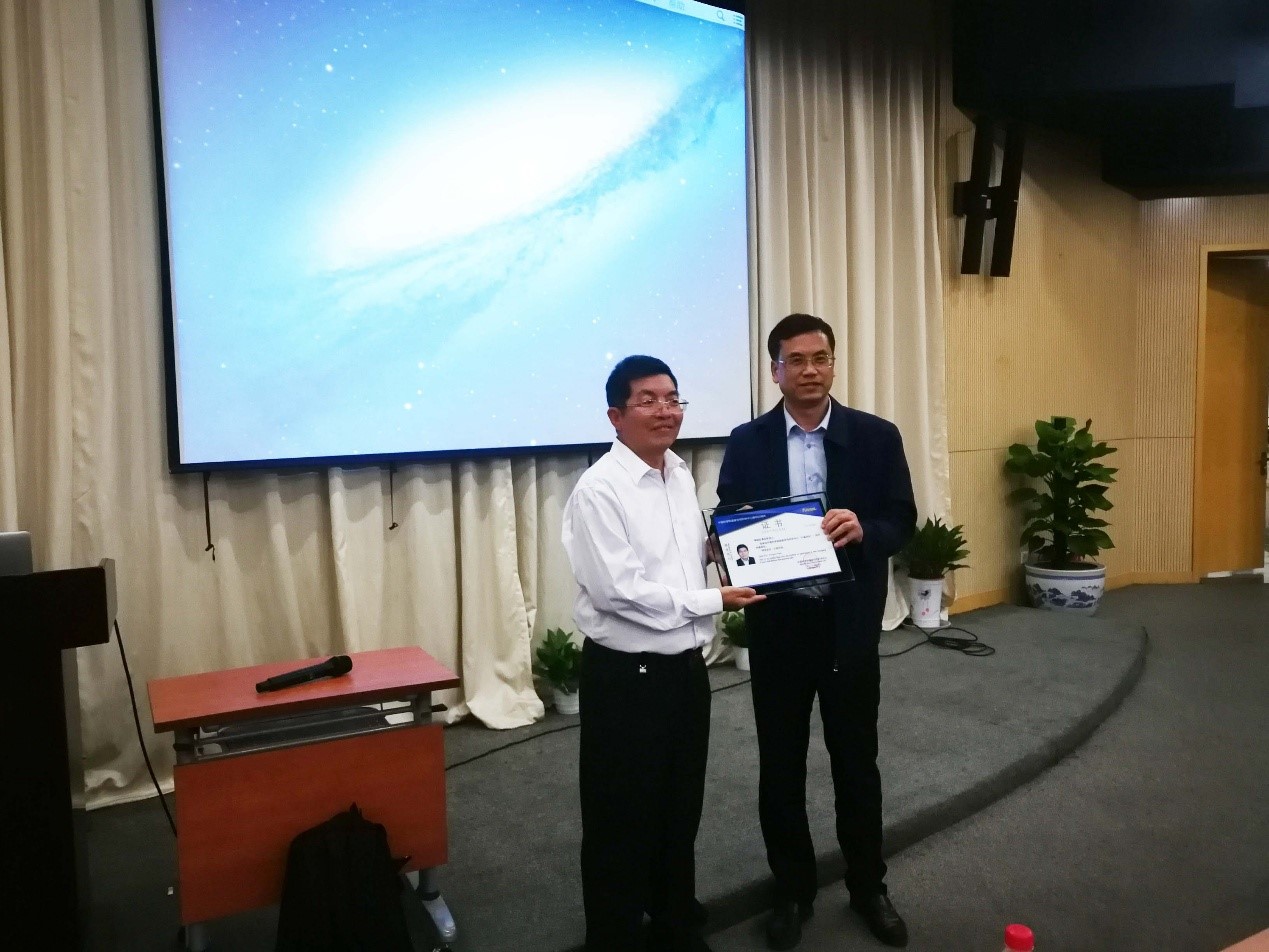 图:王赤主任为潘永信院士颁发九章荣誉证书