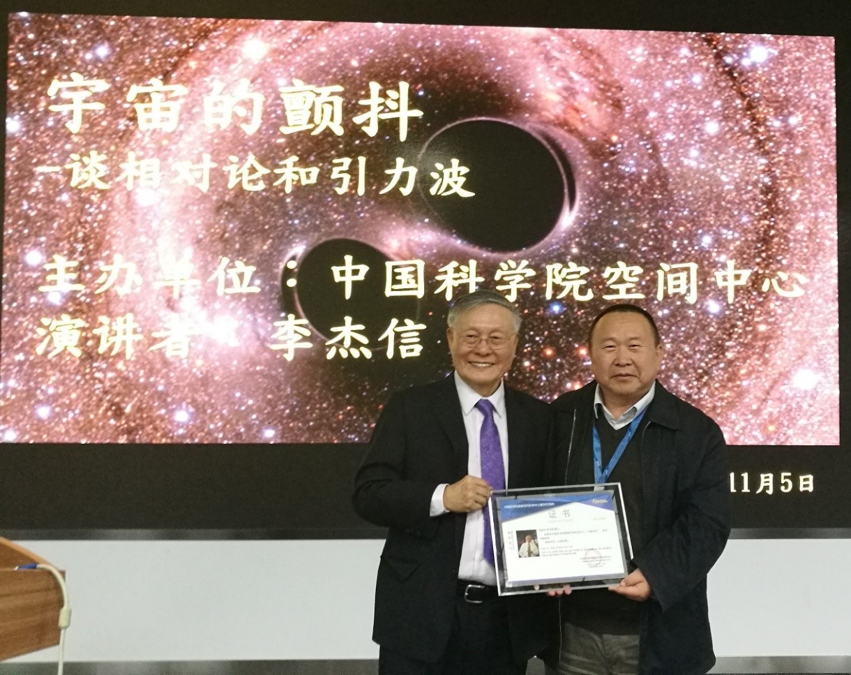 “九章讲坛”第八期于11月5日下午在空间中心怀柔论证大厅开讲,曾在美国国家航空航天局(NASA)担任太空任务科学家的李杰信博士做了题为《宇宙的颤抖——谈相对论和引力波》的报告,本次讲坛由空间中心党委书记、副主任孟新主持。