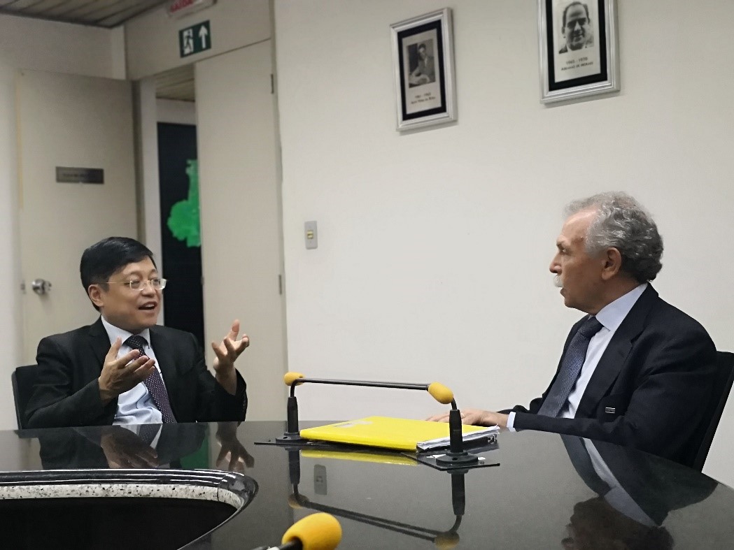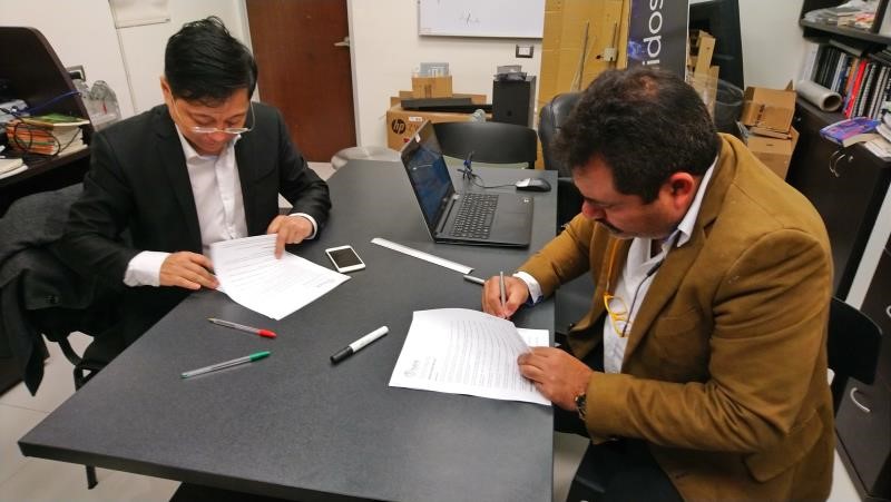 图一:刘维宁研究员与墨西哥国立自治大学数理学院空间物理负责人Eduardo Perez教授草签合作协议