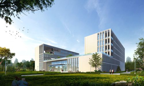 图四:子午工程二期综合信息与运控中心(南侧)和国际子午圈总部大楼(北侧)效果图