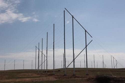 内蒙古占据了我国空间环境扰动的上游,四子王旗地区恰好位于我国子午线沿线中纬度地区中部,特殊的地理位置使得四子王旗台站在监测地球空间环境方面具有得天独厚优势。作为在内蒙古落地建设的首个空间天气领域国家重大科技基础设施,四子王旗台站以大型高频雷达阵为主要探测设备,集合了无线电雷达、主被动光学、宇宙线、地磁等多种探测手段,台站占地面积约400亩,预计于2023年完成基本建设。台站建成后将具备对我国北部电离层、中高层大气、宇宙线以及地磁场扰动的实时监测能力,更好提升我国空间环境地基监测能力,将成为我国中纬地区重要的国际空间环境探测研究基地和开展空间科学传播的重要研学基地。