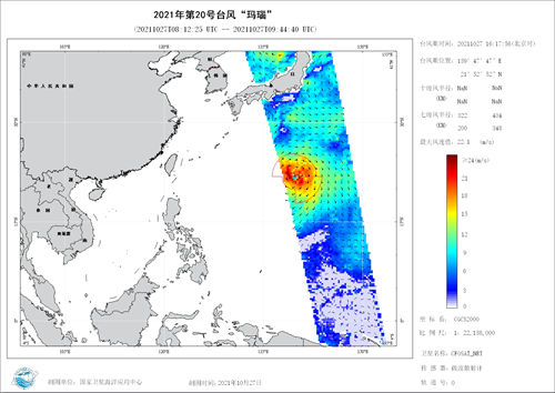 图1. 中法海洋卫星微波散射计台风监测(图片来源:自然资源部国家卫星海洋应用中心)