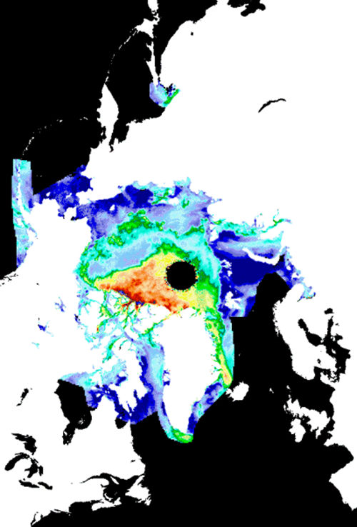 图2.中法海洋卫星微波散射计北极海冰分类(图片来源:Ifremer/LOPS,France)