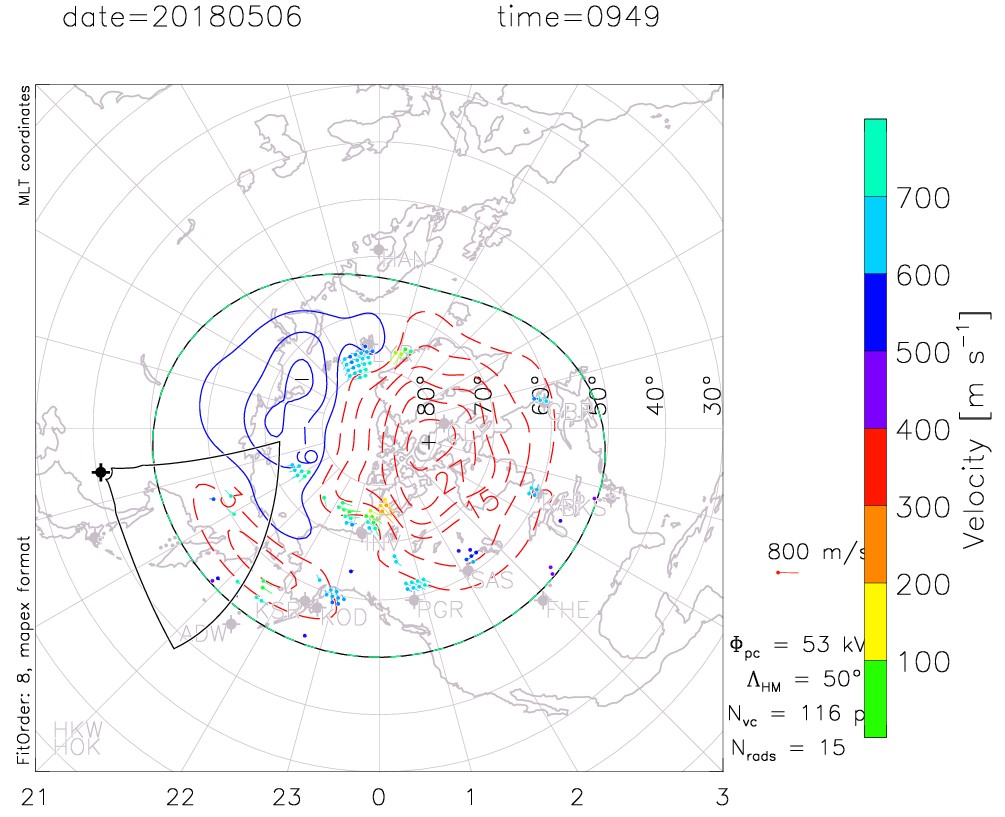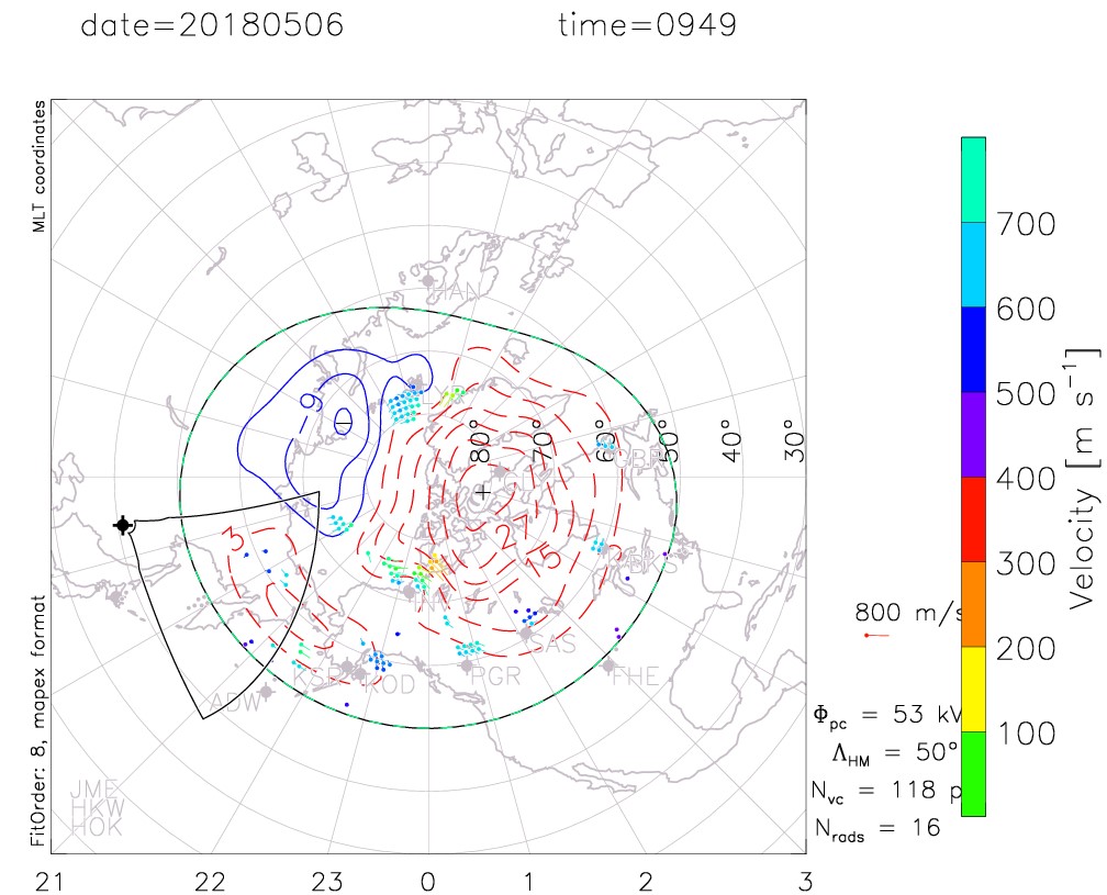 “地基相干高频雷达阵关键技术”是“十二五”863计划支持的课题,由中国科学院国家空间科学中心承担,佳木斯大学为子课题承担单位。在课题执行期间,阎敬业研究员、邱洪斌书记和蓝爱兰研究员带领课题组突破了地基相干高频雷达的多项关键技术,研制了一部灵敏型SuperDARN雷达原理样机(简称为AgileDARN雷达),坐落于黑龙江省佳木斯市郊,该样机于2017年10月完成调试,投入运行。通过应用示范,AgileDARN雷达的功能及性能得到了充分验证:在地磁平静期,可有效观测到电离层不规则体的运动;在磁暴期间可观测到亚极光区西向流的运动。AgileDARN雷达数据填补了SuperDARN雷达网络在我国中纬区域上空的数据空白,有效地提高北半球电离层对流模式图的准确性。