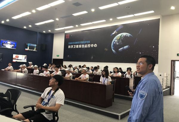 之后,师生们来到了空间科学任务大厅。李博权老师为师生们介绍了空间科学卫星的先导专项总体情况、科学卫星工程大系统组成、科学卫星任务运行总体情况,并详细介绍了暗物质卫星(悟空号)、实践十号、量子科学卫星(墨子号)、硬X射线调制望远镜卫星等科学卫星的科学目标,还为师生们放映了一个关于未来空间科学卫星计划的精彩的视频。