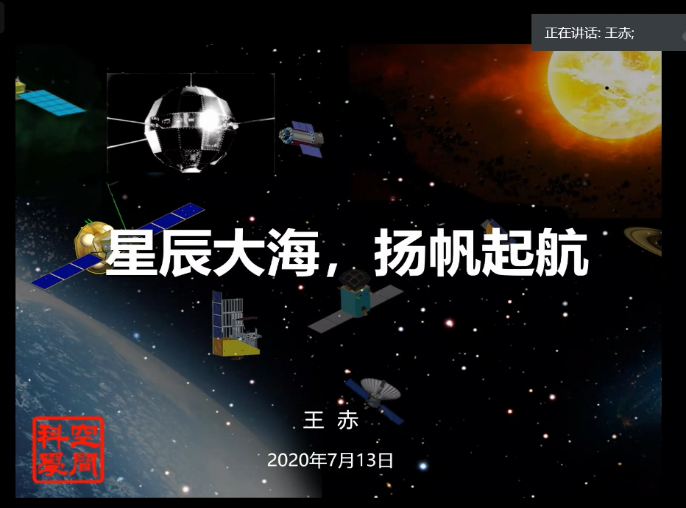 2020年7月14日上午,2020年中国科学院国家空间科学中心全国优秀大学生夏令营在线上正式开营,共有来自110多所高校的318名营员参加了此次开营仪式,人数达到了历届最高。中科院空间中心主任王赤院士出席并作开营报告,空间天气学国家重点实验室李晖研究员主持开营仪式。