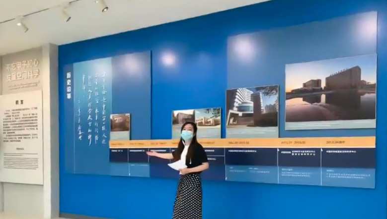 接下来是云端参观环节。讲解员带领营员同学参观了“不忘甲子初心,发展空间科学”空间中心成立六十周年主题展,并向同学们展示了园区的科研、生活环境和园区风貌。