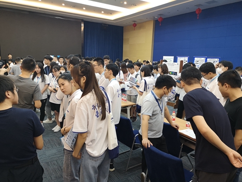 20日,线下活动的第二天忙碌而充实,可谓“文武双全”——上午是师生们交流沟通的见面会,下午则是活泼轻松的素质拓展活动。上午东方红厅内展板林立,各个研究室的导师们都热情地为前来咨询的同学答疑解惑。有内容详尽的宣传册,有实验室的VR设备,有介绍毕业生就业去向的展板,有各专业方向导师们的介绍,激起了同学们满满的好奇心和求知欲,交流氛围十分热烈。下午,同学们进入了与上午气氛截然不同的东方红厅进行素质拓展活动。同学们分为8组展开了激烈的冠军队伍角逐,文有党史回顾党历梳理活动、武有“蛟龙出海”(横行二人三足)、牵手过绳等项目。怀柔实在天公作美——尽管正值三伏,下午的温度光照却舒适宜人,同学们都玩的十分尽兴。最后,本次活动的冠军队伍放出霸气获奖感言“就是优秀!”引得其他队伍们哄堂大笑。在主持人的总结中本日活动落下帷幕,夕阳斜照、笑声朗朗。