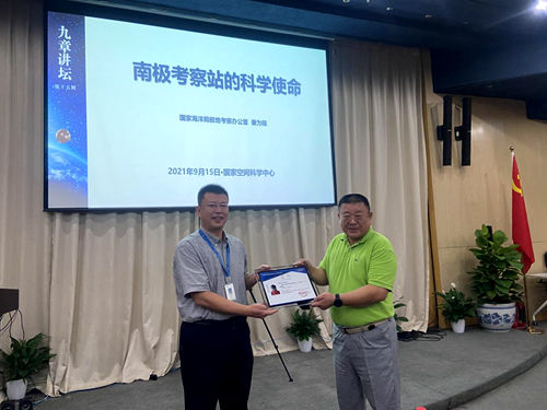 “九章讲坛”第十五期于9月15日下午在空间中心中关村园区四楼地球厅开讲,本次讲坛由空间中心所务委员、中科院复杂航天系统电子信息技术重点实验室主任杨震研究员主持,邀请国家海洋局极地考察办公室秦为稼一级巡视员做了题为《南极考察站的科学使命》的报告。