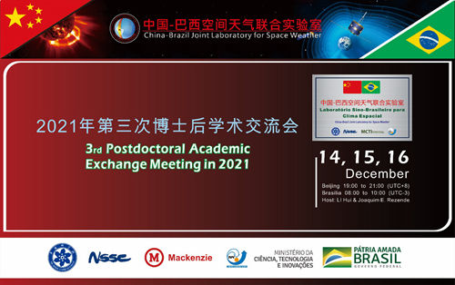 12月14日-16日,中国-巴西空间天气联合实验室/中国科学院南美空间天气实验室(以下简称南美实验室)以视频会议的方式组织召开了本年度第三次海外博士后学术交流会,来自中国科学院国家空间科学中心(NSSC)、巴西国家空间研究院(INPE)、巴西麦肯齐天主教大学(UPM)等单位的30余人参与了交流讨论。会议由INPE空间天气监测研究部主任若阿金(Joaquim E. Rezende Costa)教授和南美实验室常务副主任李晖研究员联合主持。