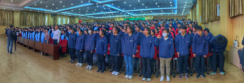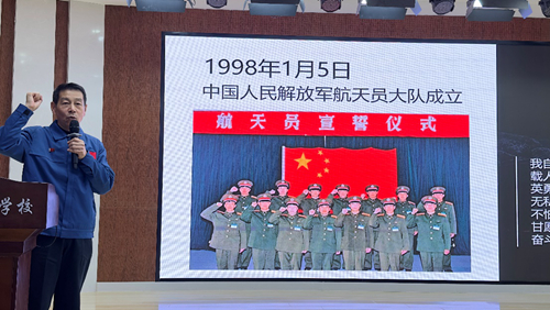 “星辰大海等着你”吉林行系列科普活动中,首批航天员赵传东带领学生向国旗宣誓