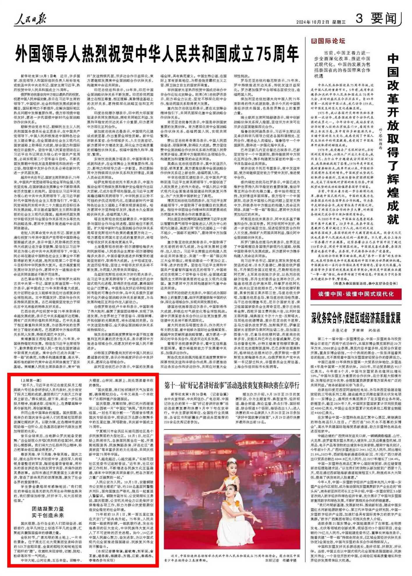 75年前的10月1日,第一面五星红旗在天安门广场冉冉升起。75年来,人民共和国一路披荆斩棘,一路凯歌行进,发生沧海桑田的巨大变化,中华民族伟大复兴进入了不可逆转的历史进程。如今,14亿多中国人民凝心聚力、奋发进取,为以中国式现代化全面推进强国建设、民族复兴伟业而不懈奋斗。