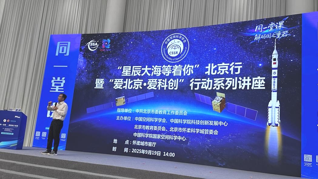 2025年9月,为迎接首个全国科普月,作为第四届中国空间科学大会版块之一,“星辰大海等着你”北京行暨“爱北京·爱科创”行动系列讲座在北京市密云、怀柔、延庆、平谷区多所学校陆续开展,中国科学院王赤院士、首批航天员赵传东、陈全等多名专家走进校园,为约24万名青少年带来一场场精彩纷呈的空间科学科普盛宴。